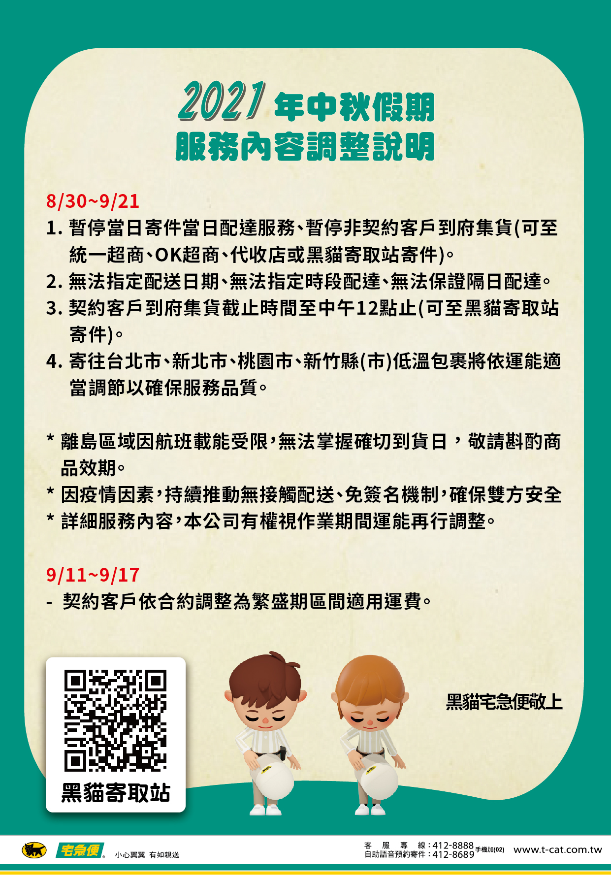 您的訂單已出貨!但因中秋檔期黑貓物流量大,無法指定到貨時間喔!敬請見諒!