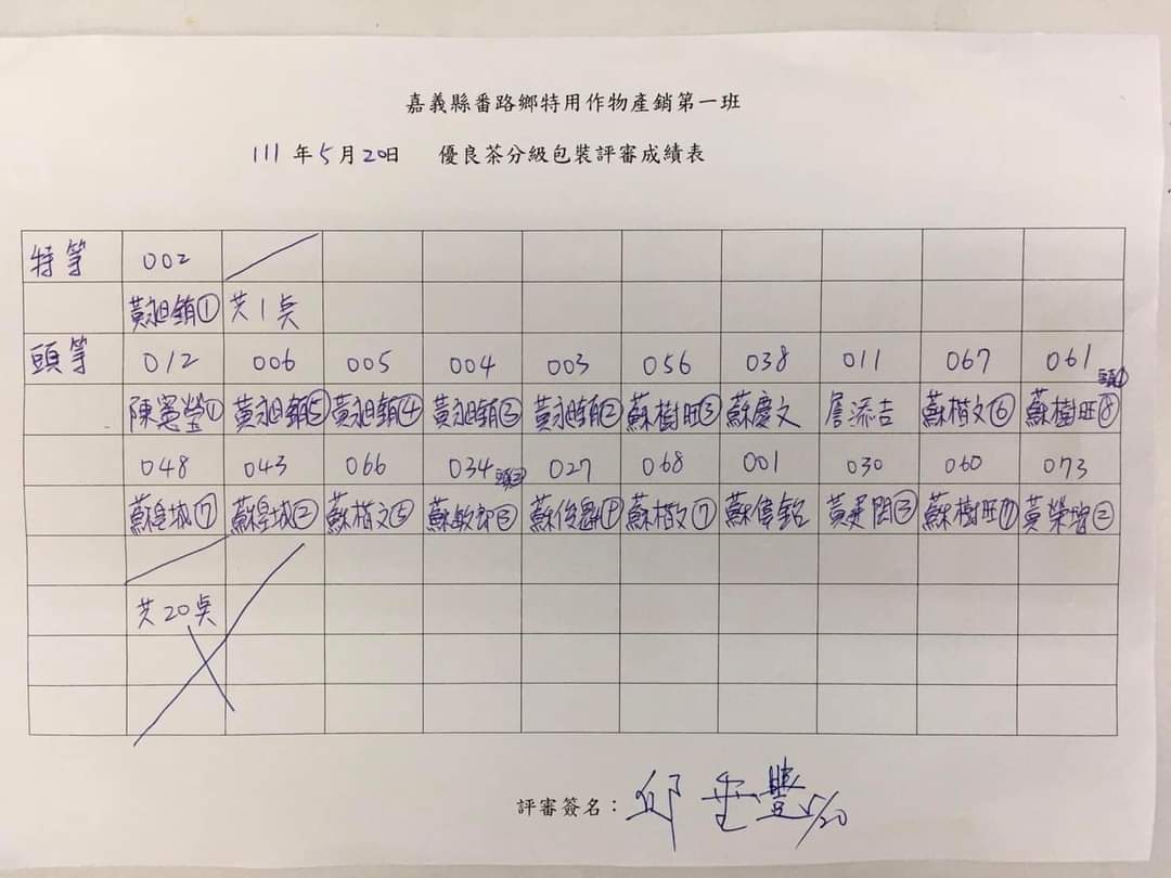 111年番路鄉特用作物產銷第一班~春季優良茶分級評鑑結果出爐