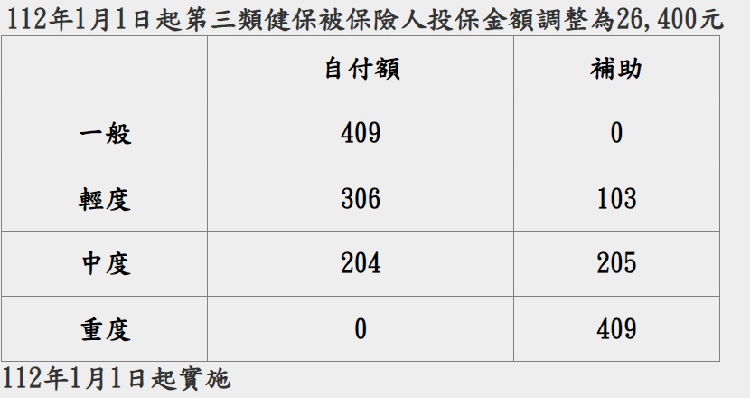 112年1月1日起第三類健保被保險人投保金額調整為26,400元