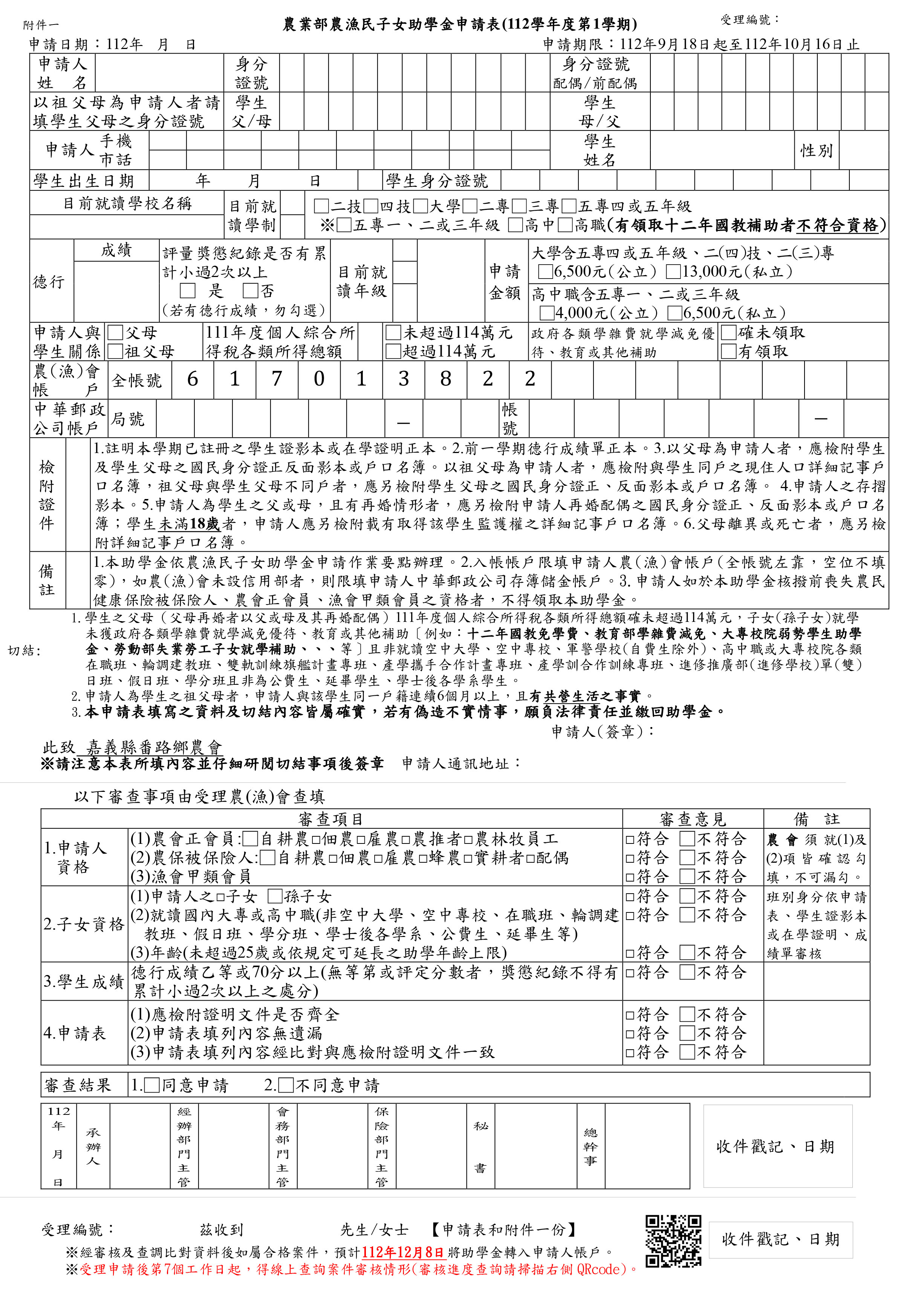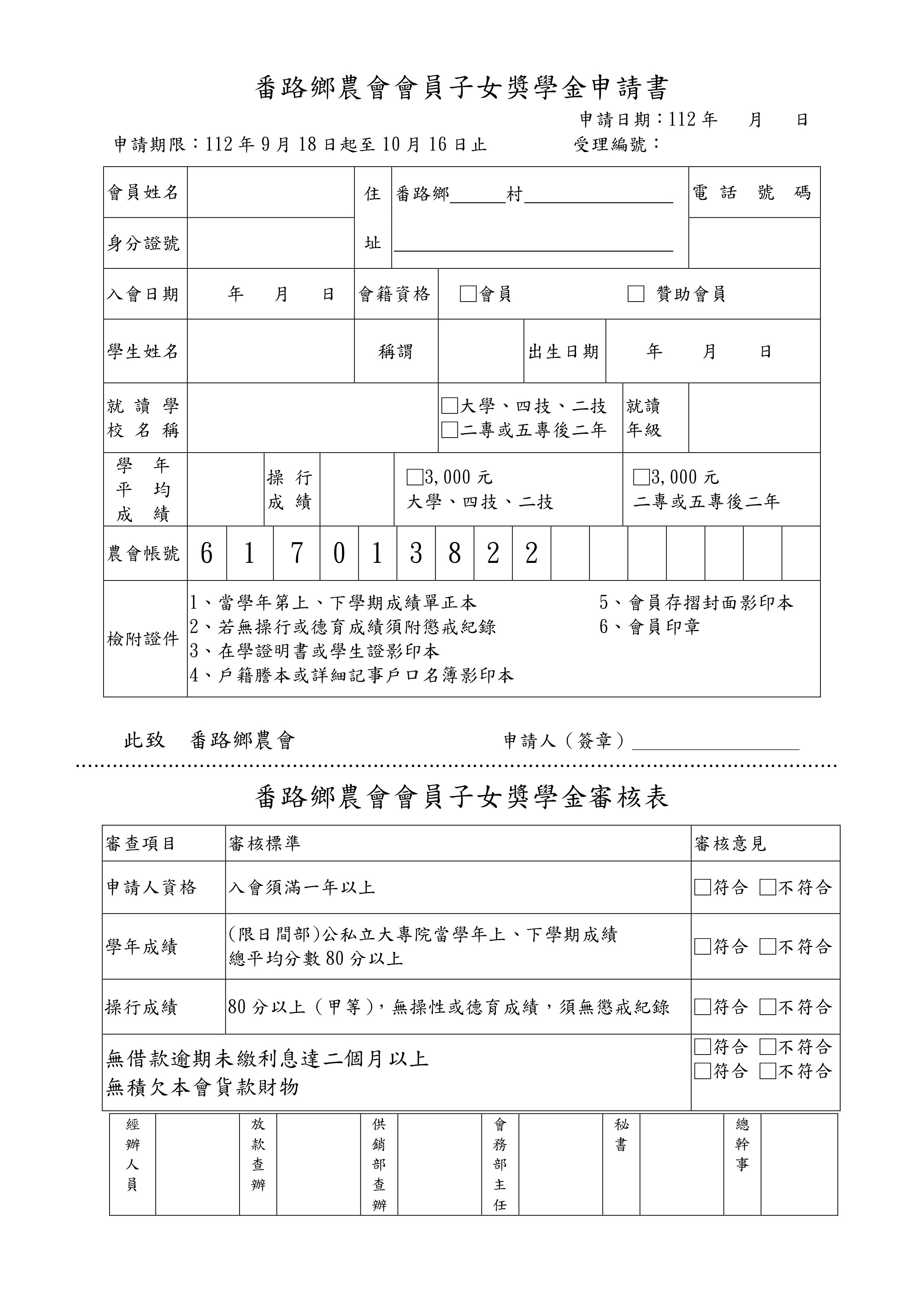 番路農會『會員子女獎學金』申請書下載