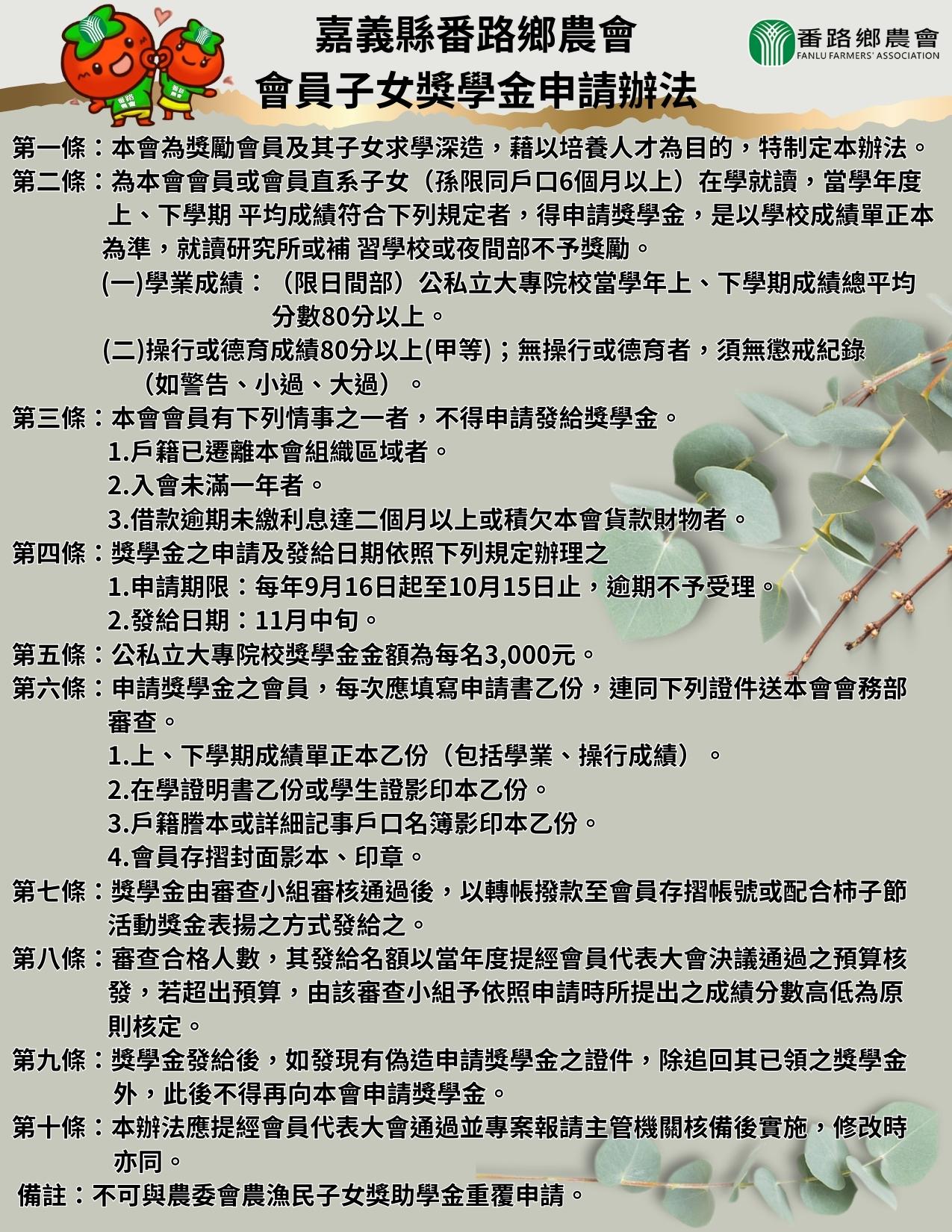 番路農會『會員子女獎學金』