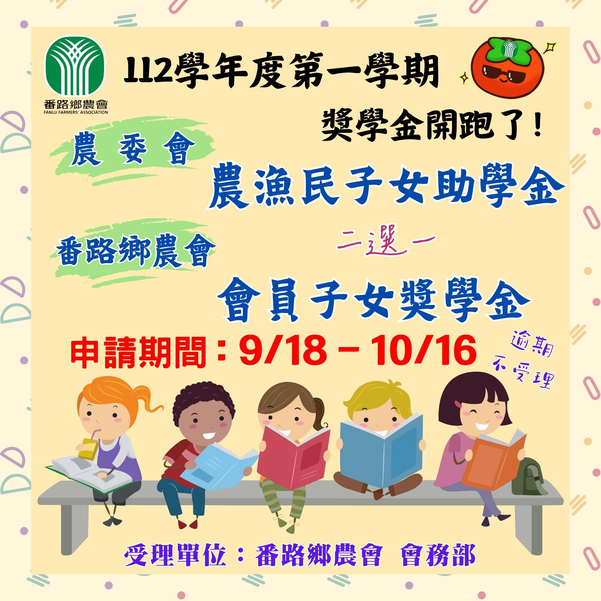 農業部『農漁民子女助學金』詳情請參閱連結網址(農委會公告)