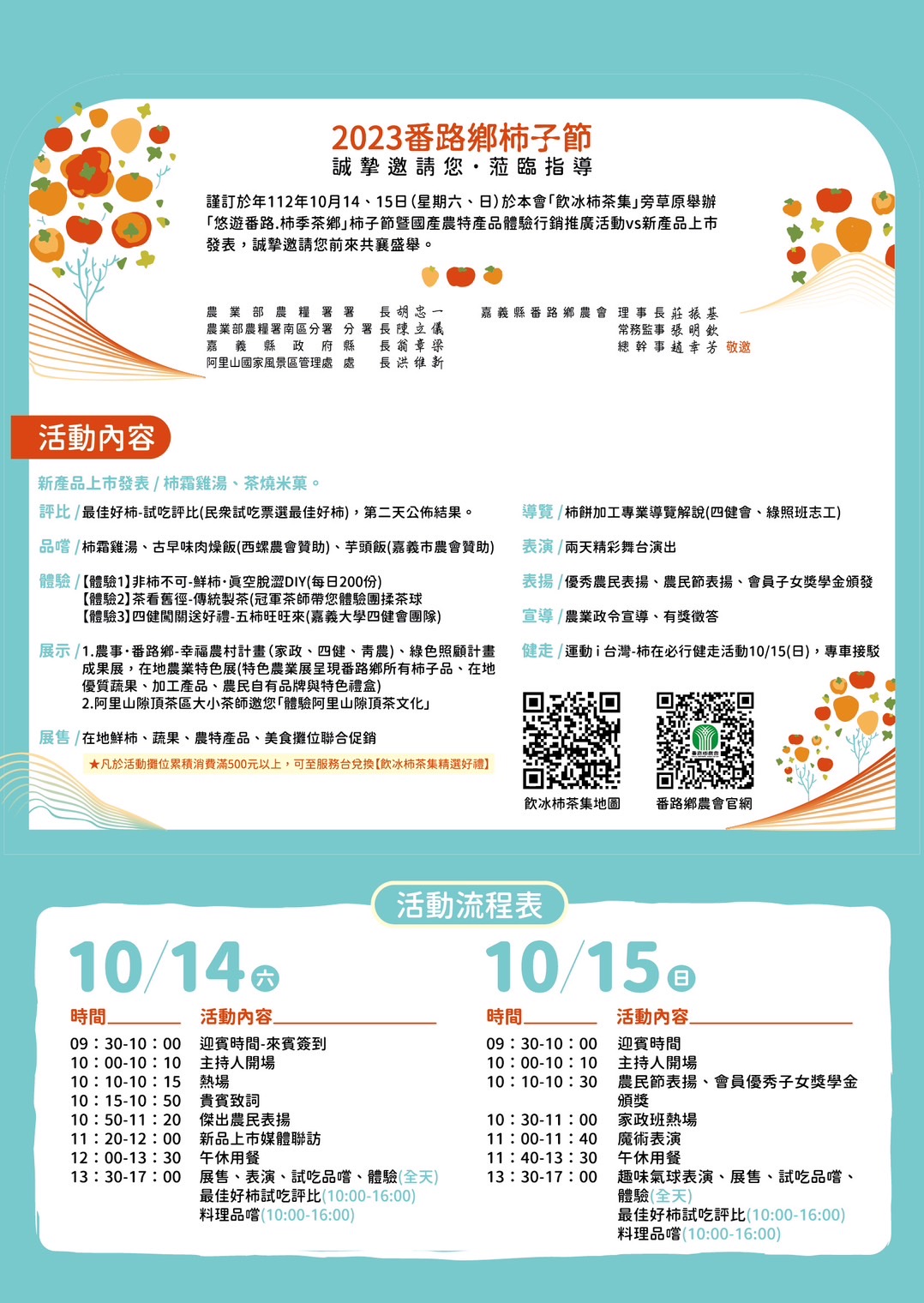 番路鄉柿子季-本週10/14-15(六日)即將登場-敬邀您蒞臨參加,共襄盛柿
