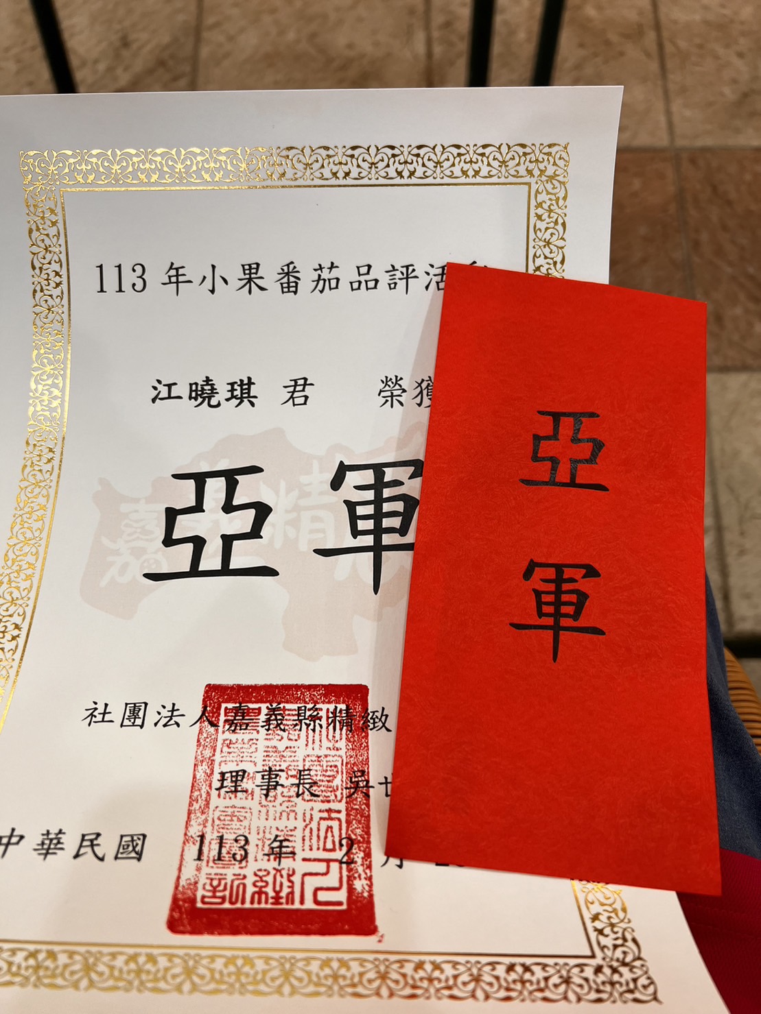 恭禧番路女青農江曉琪參加嘉義縣小果番茄品評活動再獲大獎!