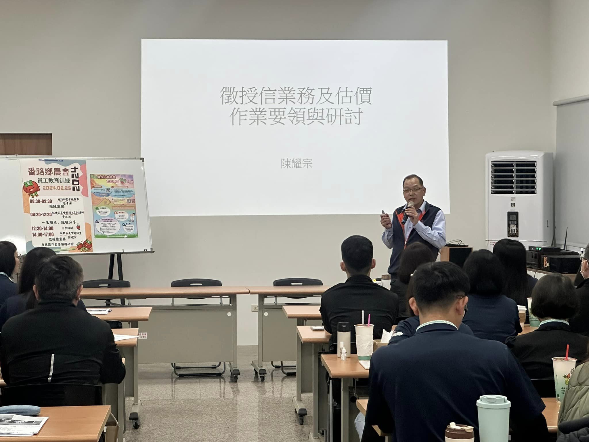 前秘書 陳耀宗 代書,以其代書專業及數十年辦理授信之實務經驗,透過淺顯易懂的具體案例分析講授「徵授信業務及估價作業要領」,詼諧幽默的授課內容,讓所有與會員工如醍醐灌頂,獲益良多。
