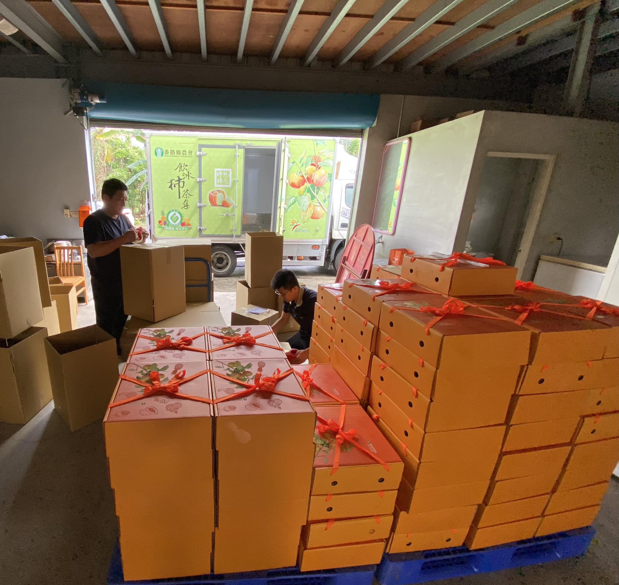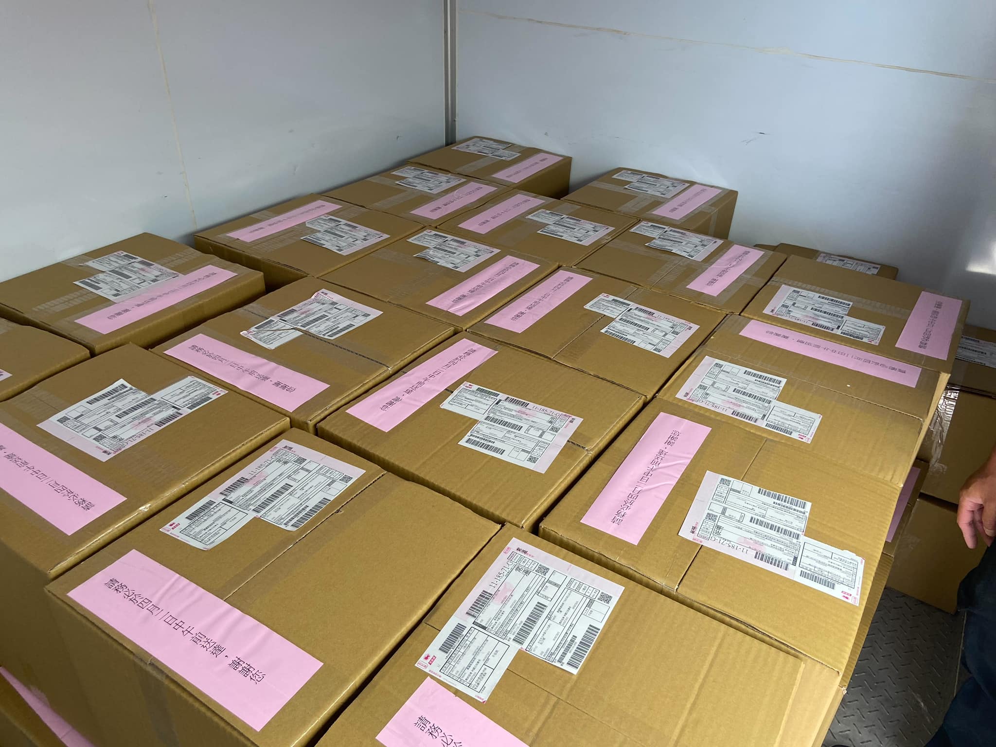今天早上130餘盒禮盒順利出貨