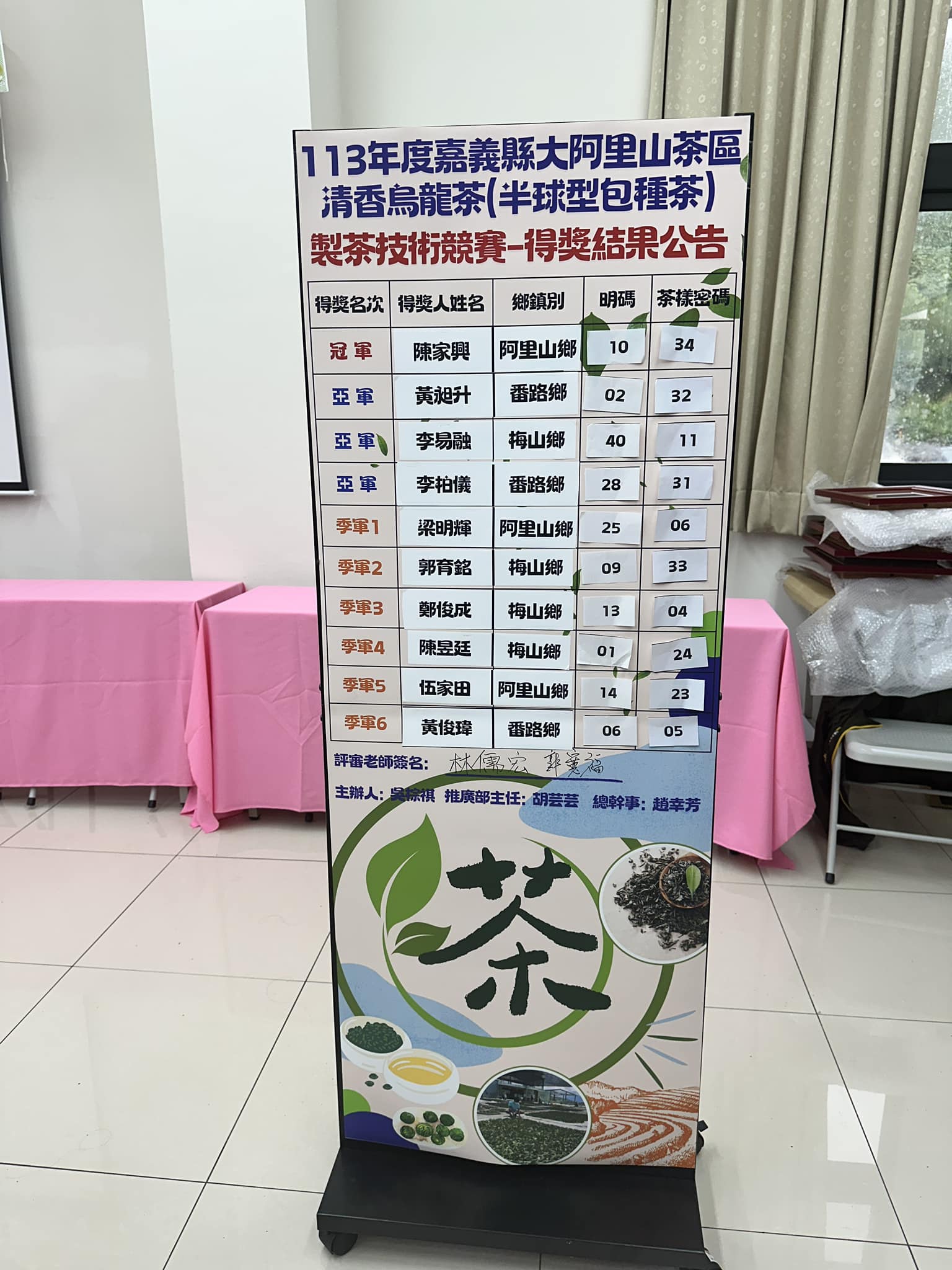 113年度大阿里山茶區清香烏龍茶製茶技術競賽-紅榜祝賀