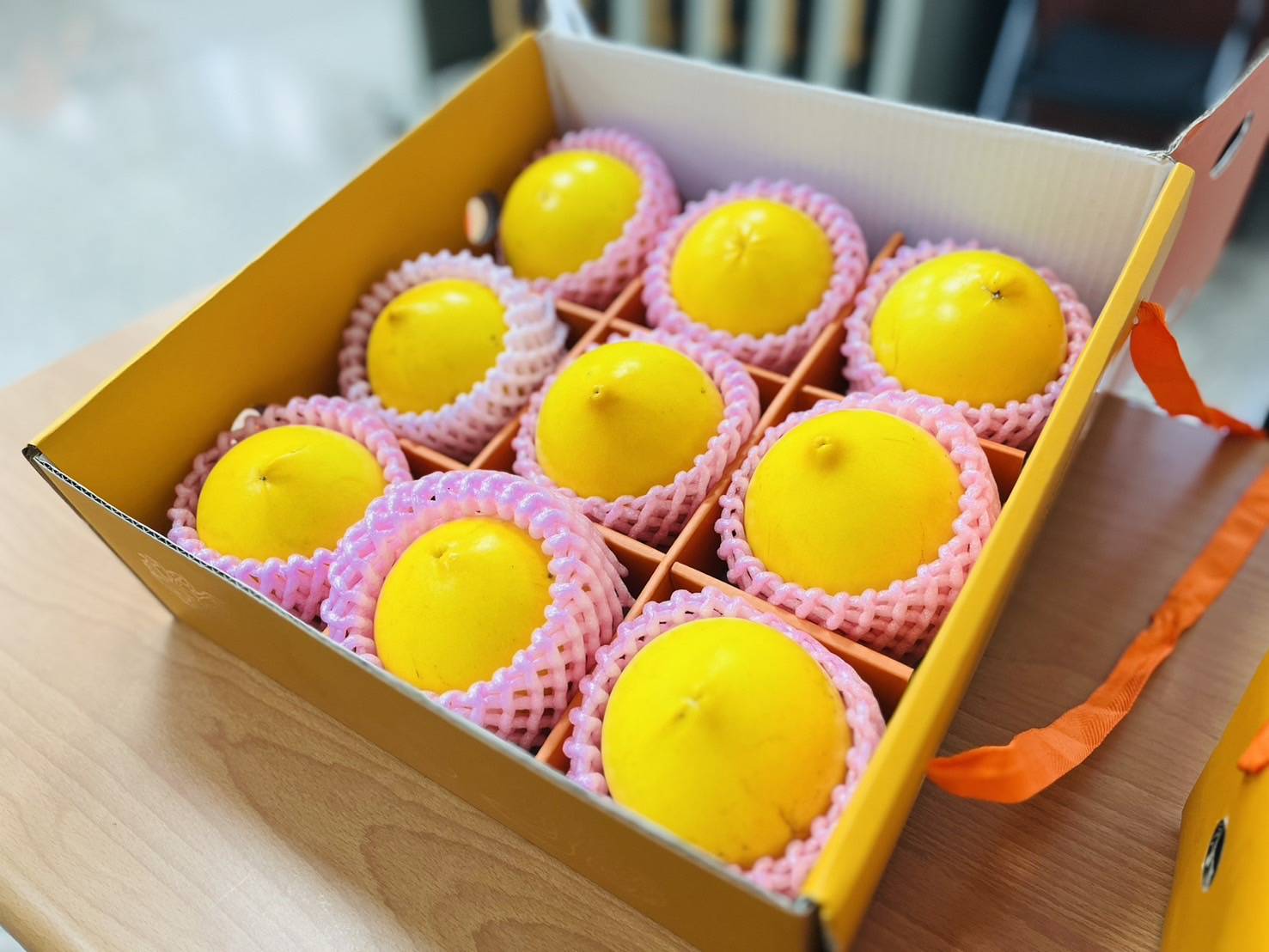 這顆 大金莎黃金果 是番路鄉農民努力的成果,目前全鄉種植面積約100公頃,果皮厚耐運送保存,更受到貿易商青睞出口到香港及其他國家。