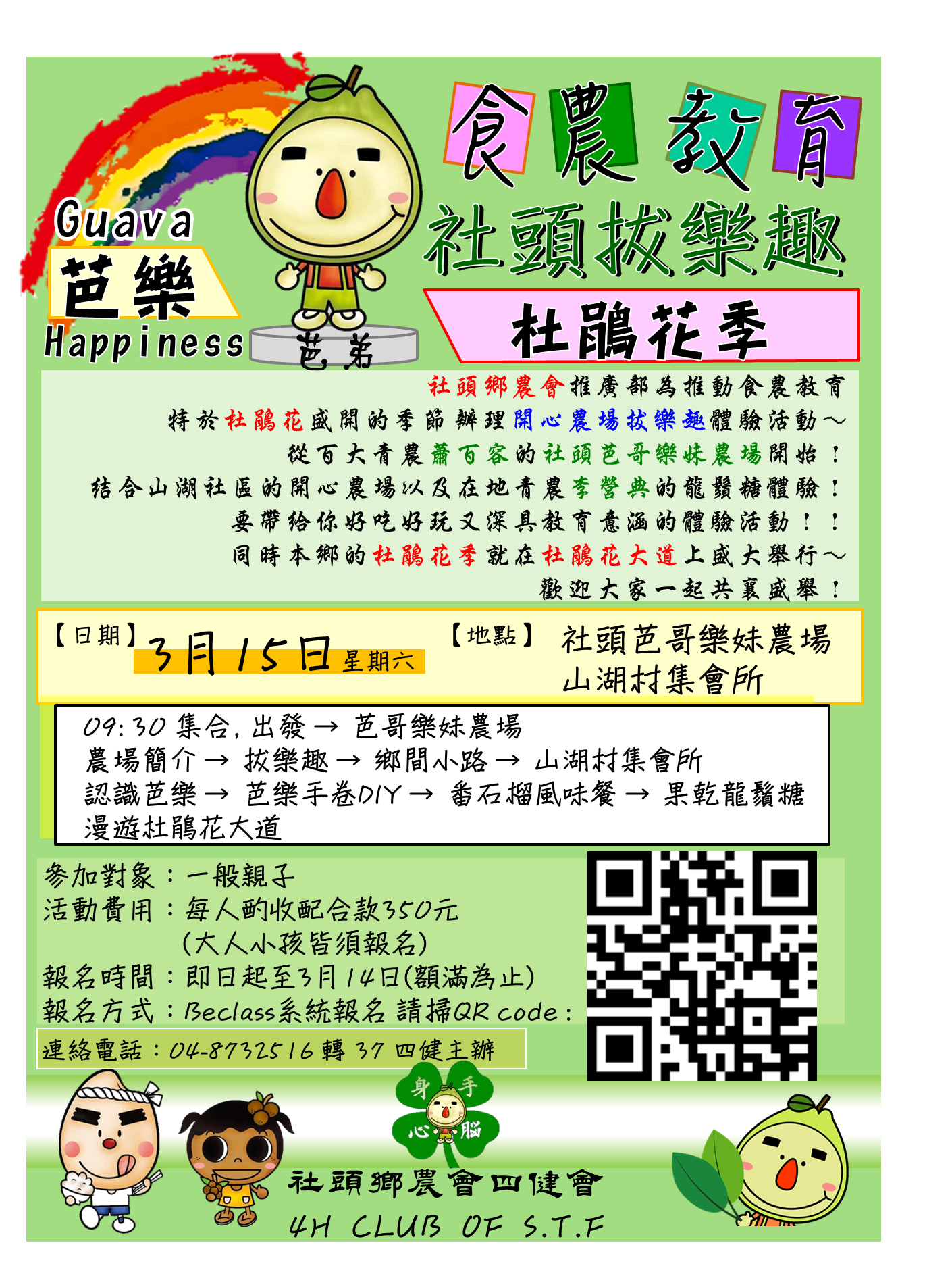 ★報名費用:350元/人 - 大人小孩均一價, 皆需報名 3歲以下免費(限一位)
