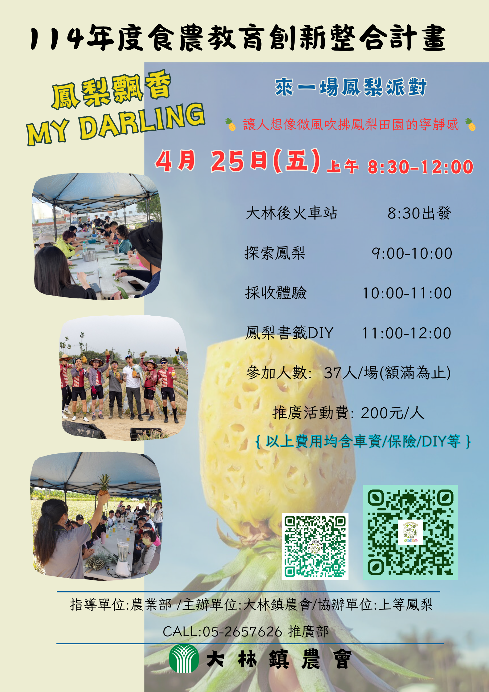 大林鎮農會主辦「鳳梨飄香MY DARLING」及「與你的梔心時光」食農教育農業體驗活動
