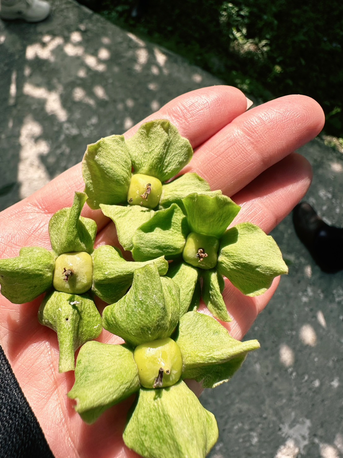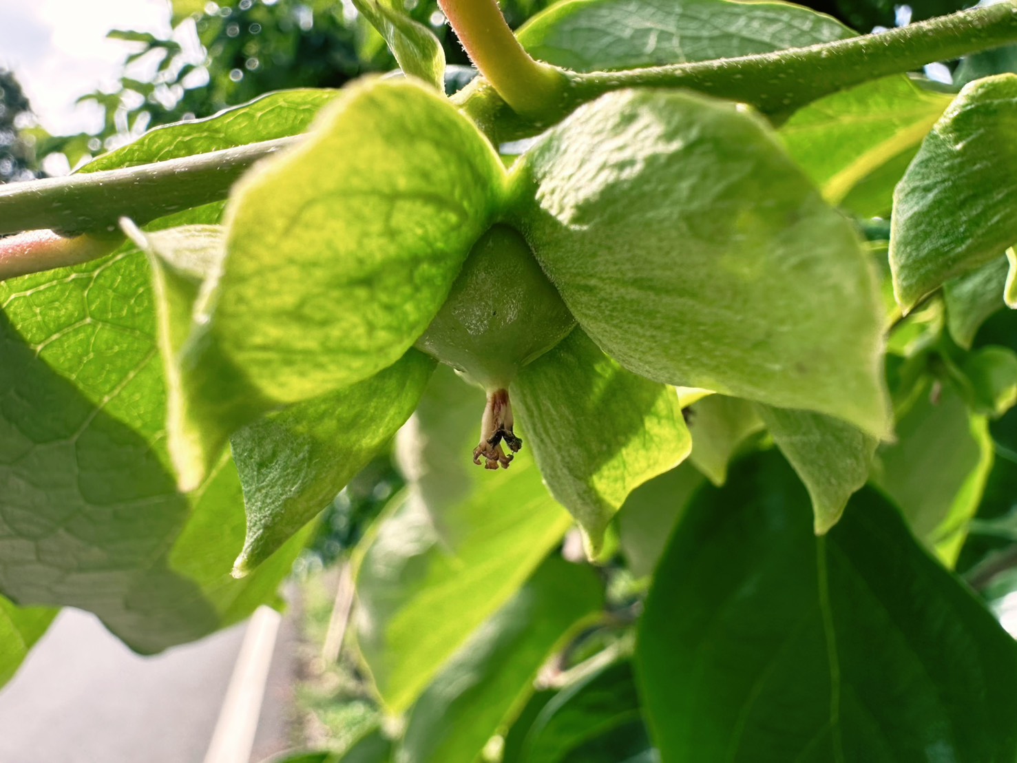 氣溫漸漸升高,白色柿花悄悄落下,一顆顆躲在枝葉間青綠色的小柿寶~圓滾滾、小巧可愛,彷彿在對你撒嬌:「快看我,我在努力長大中!」