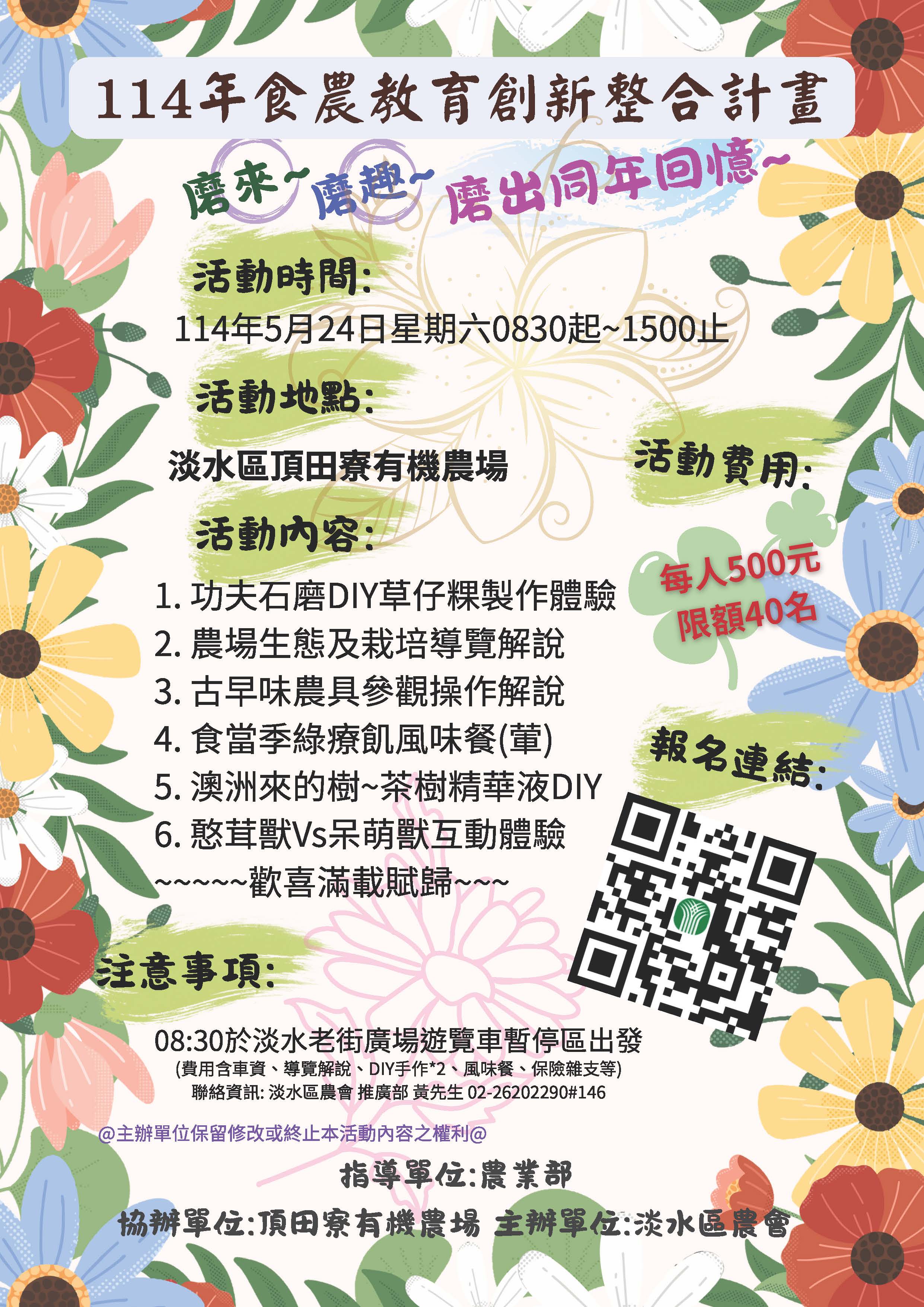 淡水區農會主辦「磨來磨趣-磨出同年回憶」食農體驗活動