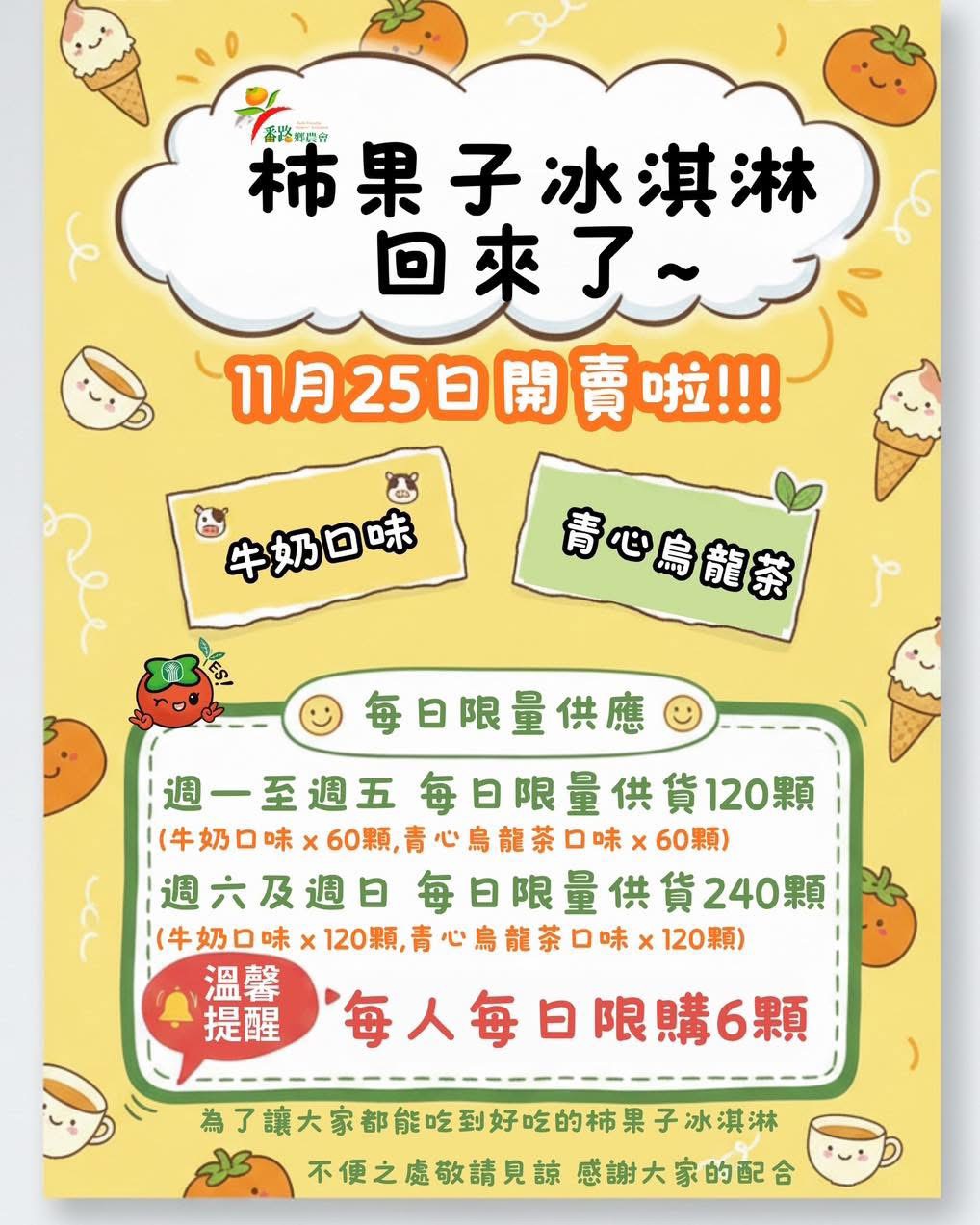 感謝您長期以來對本會「柿果子冰品系列」的支持與喜愛。