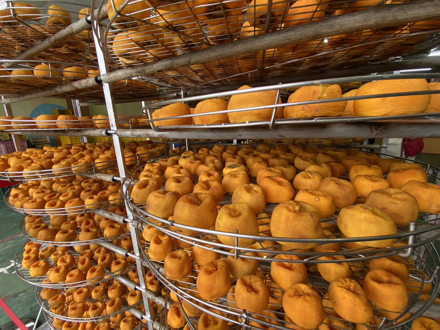 過去,製作柿餅要靠戶外日曬風乾,露天晾曬,常惹來成群蒼蠅與落塵,衛生條件較差~而今,農會採用室內機器烘焙柿餅,並由專業員工輪班嚴格生產管控每道製程,成本雖然提高許多,但是做出來的柿餅品質好,衛生佳,且開發了多元柿果子品項,均受到消費者喜愛