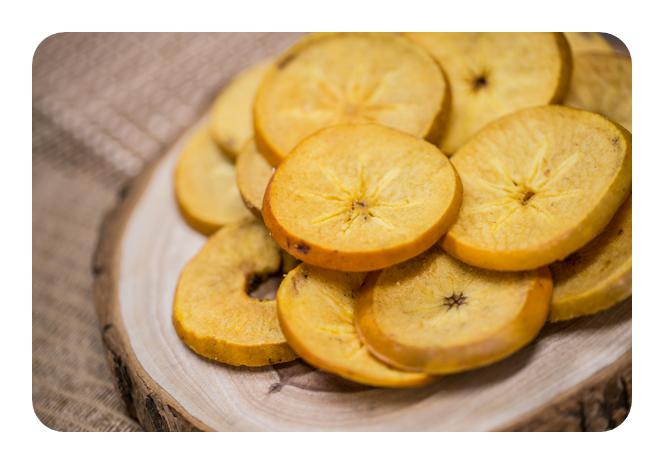 嚴選來自番路鄉所產牛心柿,經脫澀、洗淨、切片、乾燥而成,封存鮮柿原始瑰麗果香,口口天然、片片香脆,是解饞又健康的零嘴首選