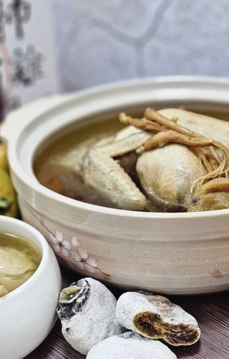 主成份:嚴選溫體全雞、霜降柿餅、人蔘、紅棗、黃耆、枸杞